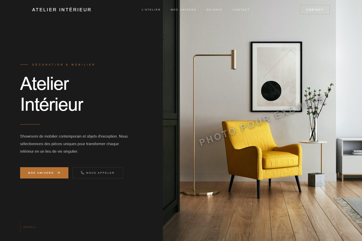 Design premium dark & gold avec animations cinématiques, carte élégante et galerie immersive.